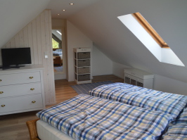 Die Ferienwohnungen Fievfoten überzeugen durch ihre geschmackvolle und komfortable Einrichtung. Die ruhige Lage in unmittelbarer Nähe zum Südstrand und dem Inselwäldchen Greune Stee schafft alle Voraussetzungen für einen erholsamen Urlaub. Bei 2 bis 6 Personen im EG und 2 bis 4 Personen im OG sind die Wohnungen bestens geeignet für den Familienurlaub oder die Reise zu zweit. Die großzügig geschnittene Dachterrasse lädt zu einem gemütlichen Frühstück oder einem Sonnenbad ein. Von hier aus genießen sie den Blick in den Garten und in die Dünen. Die Gartenterrasse in der Erdgeschoßwohnung verführt zum Faulenzen im Strandkorb und bietet mit der angeschlossenen Rasenfläche viel Platz zum spielen. Bei schlechtem Wetter bieten beide Wohnungen ausreichende Möglichkeiten, um sich bei Musik, Film, Internet oder TV zu entspannen.